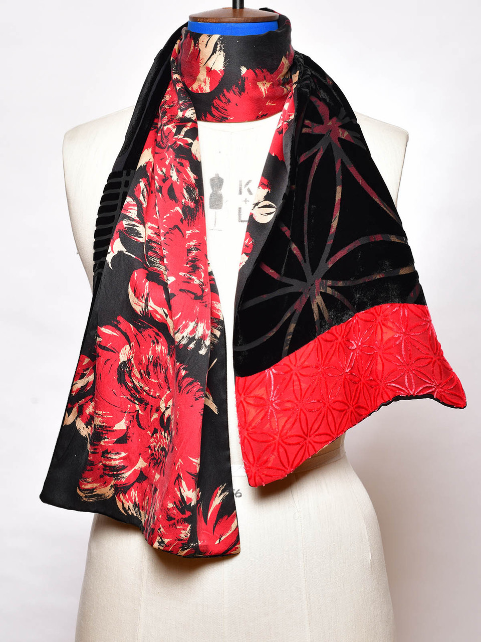 This limited edition scarf from my archives was created from a patchwork of silk devore velvets and lined with silk satin, all orginally designed and handprinted in Vixen's Melbourne studio.