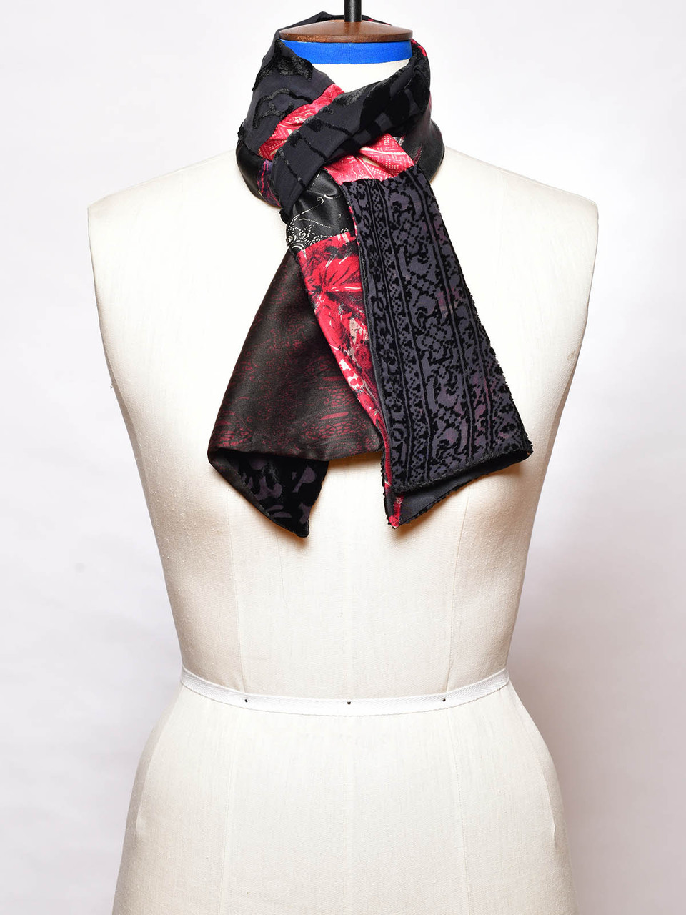 One-of-a-kind scarf created from a patchwork of original handprinted fabrics from Georgia's textile archives. This fully lined reversible scarf is designed to be worn either side with both front and back being a unique combination of fabrics.