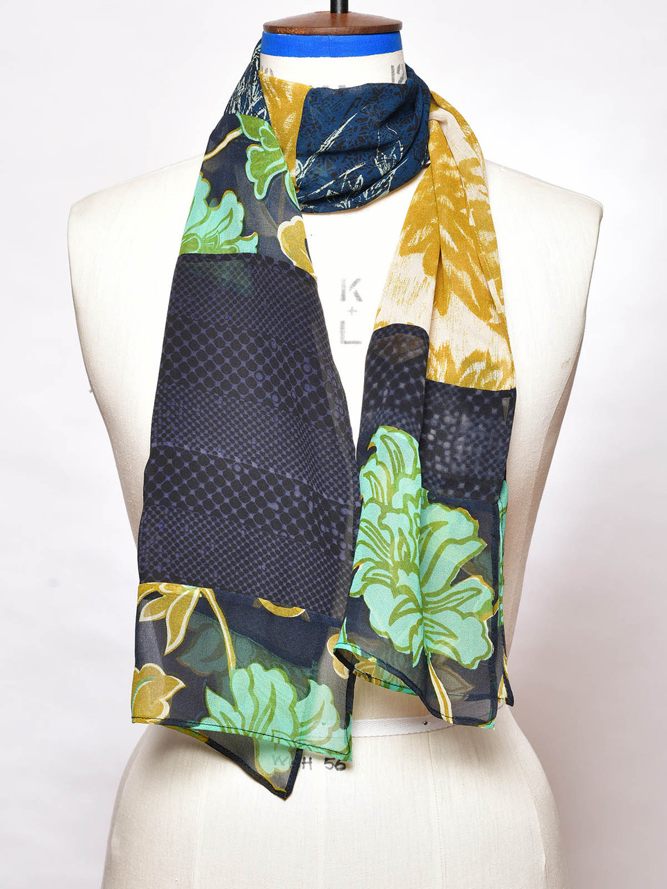 This one-of-a-kind single layer scarf has been created from a patchwork of original handprinted fabrics from Georgia's textile archives.